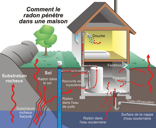 Le radon est un gaz radioactif naturel produit par la décomposition de l’uranium présent dans le sol.